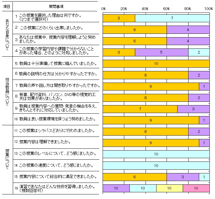 | 授業形態 | 演習 | 回答者数 | 10人 |