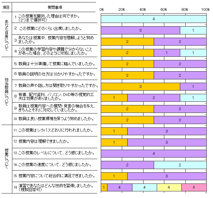 | 授業形態 | 演習 | 回答者数 | 4人 |