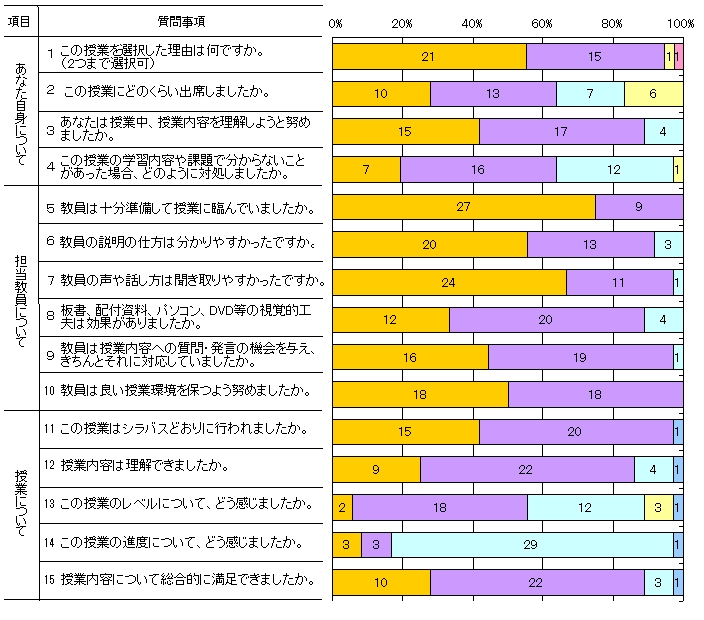 | 担当教員名 | 中村 義実 | 回答率 | 94.7% |