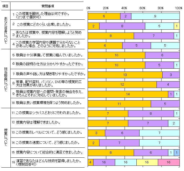 | 授業形態 | 演習 | 回答者数 | 16人 |