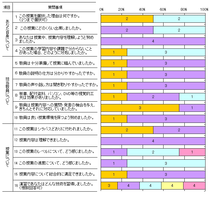 | 授業形態 | 演習 | 回答者数 | 4人 |