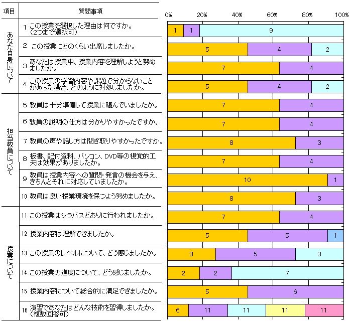 | 授業形態 | 演習 | 回答者数 | 11人 |