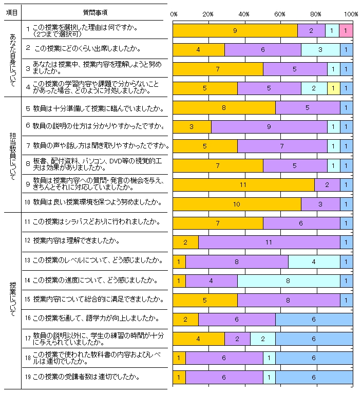 | 授業形態 | 語学 | 回答者数 | 14人 |