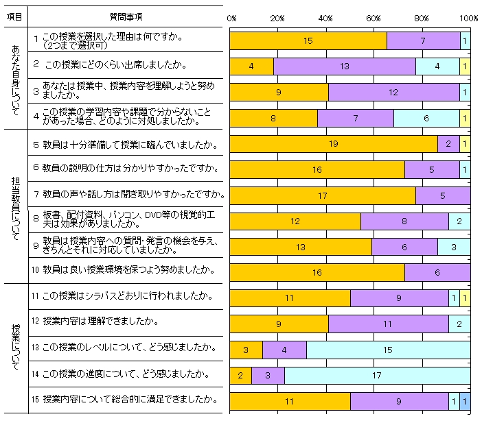 | 授業形態 | 講義 | 回答者数 | 22人 |