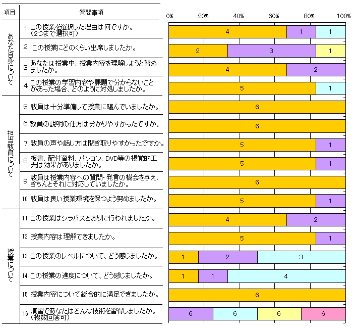 | 授業形態 | 演習 | 回答者数 | 6人 |