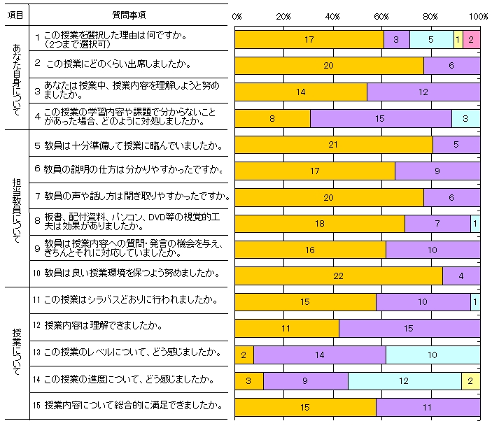 | 授業形態 | 講義 | 回答者数 | 26人 |