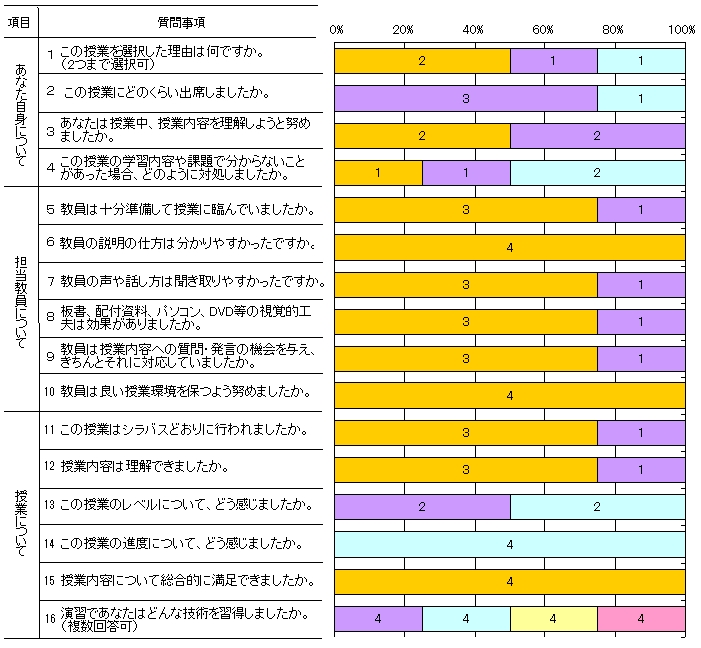 | 授業形態 | 演習 | 回答者数 | 4人 |