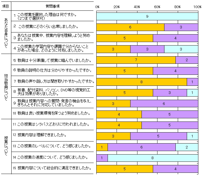 | 授業形態 | 講義 | 回答者数 | 9人 |