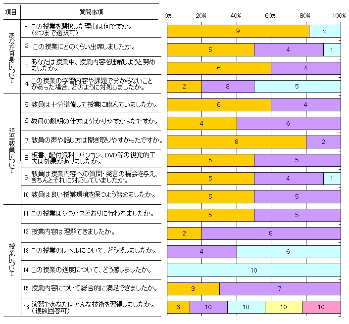 | 授業形態 | 演習 | 回答者数 | 10人 |