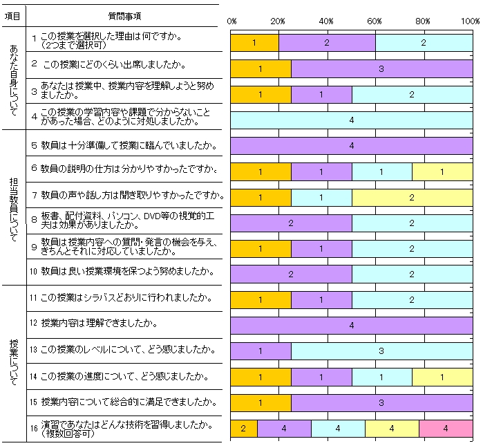 | 授業形態 | 演習 | 回答者数 | 4人 |