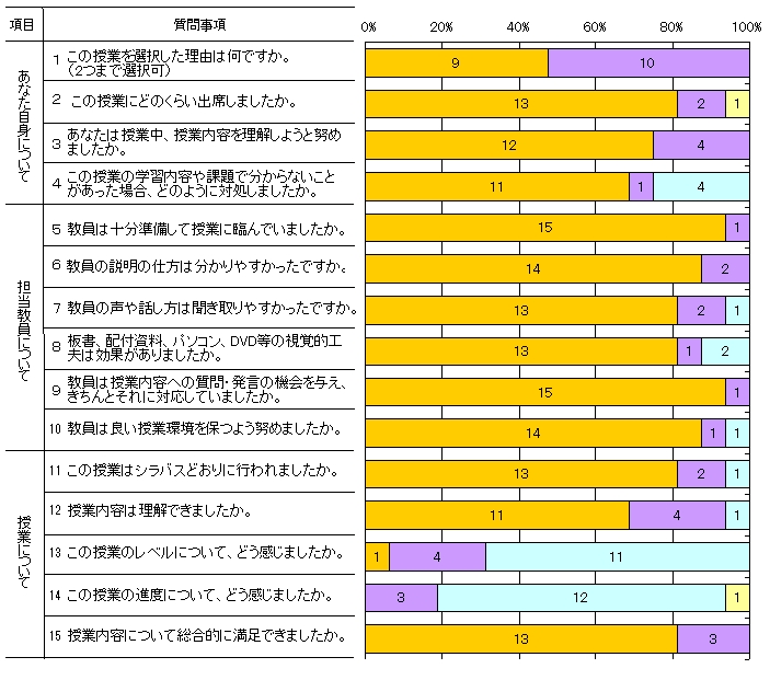 | 授業形態 | 講義 | 回答者数 | 16人 |