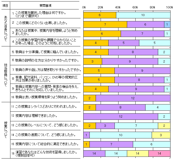 Last year, I did not sufficiently understand the Japanese kanji related to the audiovisual controls and my own computer, which also has had many mechanical problems. As a result, the students correctly did not evaluate my usage of audiovisual equipment as highly as I want. I believe that this also made some students feel that I did not prepare well enough. I have been working hard on my Japanese kanji reading abilities and trying to set up the equipment well in advance.