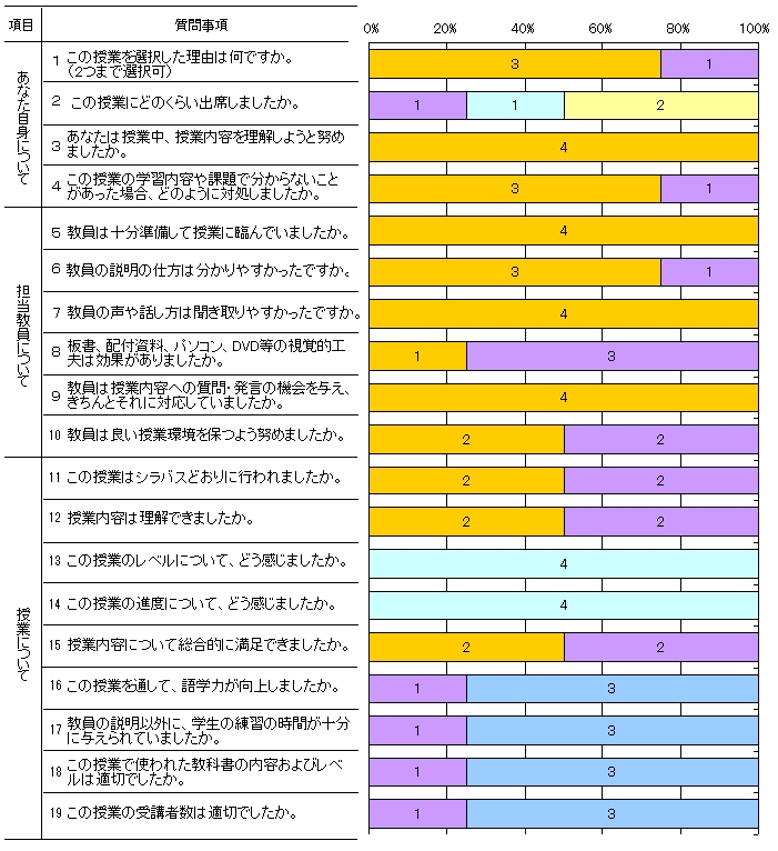 | 授業形態 | 語学 | 回答者数 | 4人 |