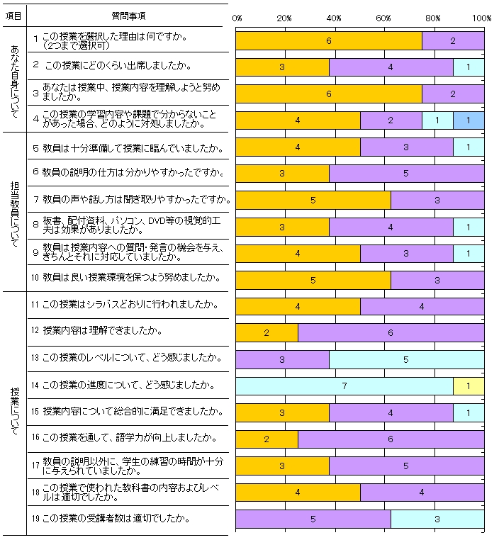 | 授業形態 | 語学 | 回答者数 | 8人 |