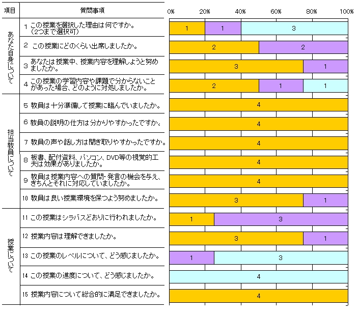 | 授業形態 | 講義 | 回答者数 | 4人 |