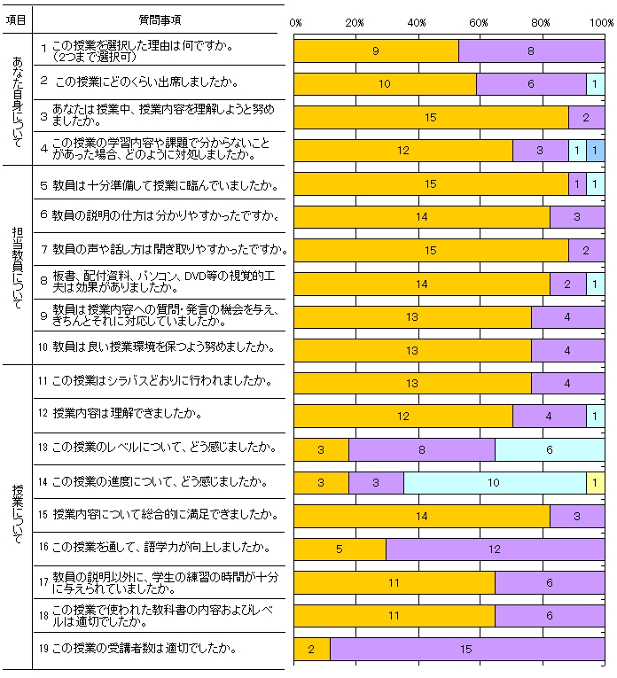 | 授業形態 | 語学 | 回答者数 | 17人 |