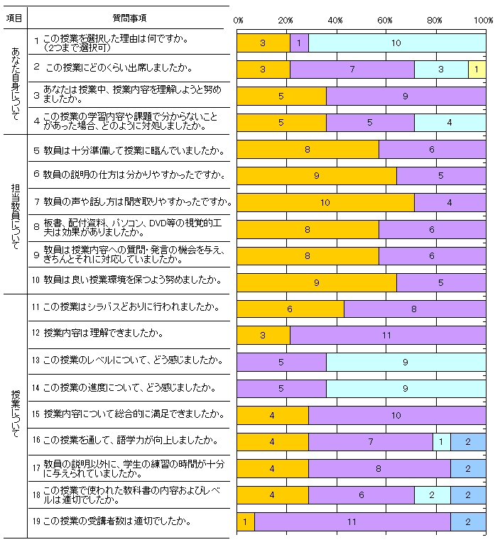 | 授業形態 | 語学 | 回答者数 | 14人 |
