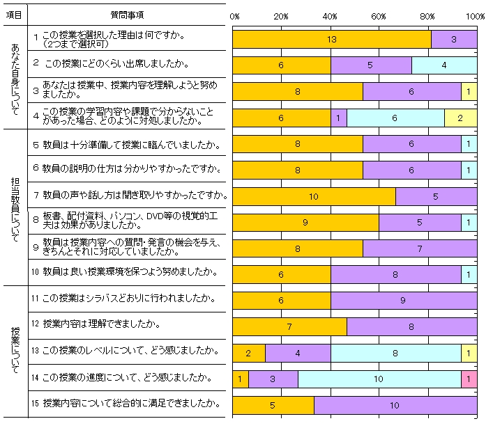 | 授業形態 | 講義 | 回答者数 | 15人 |